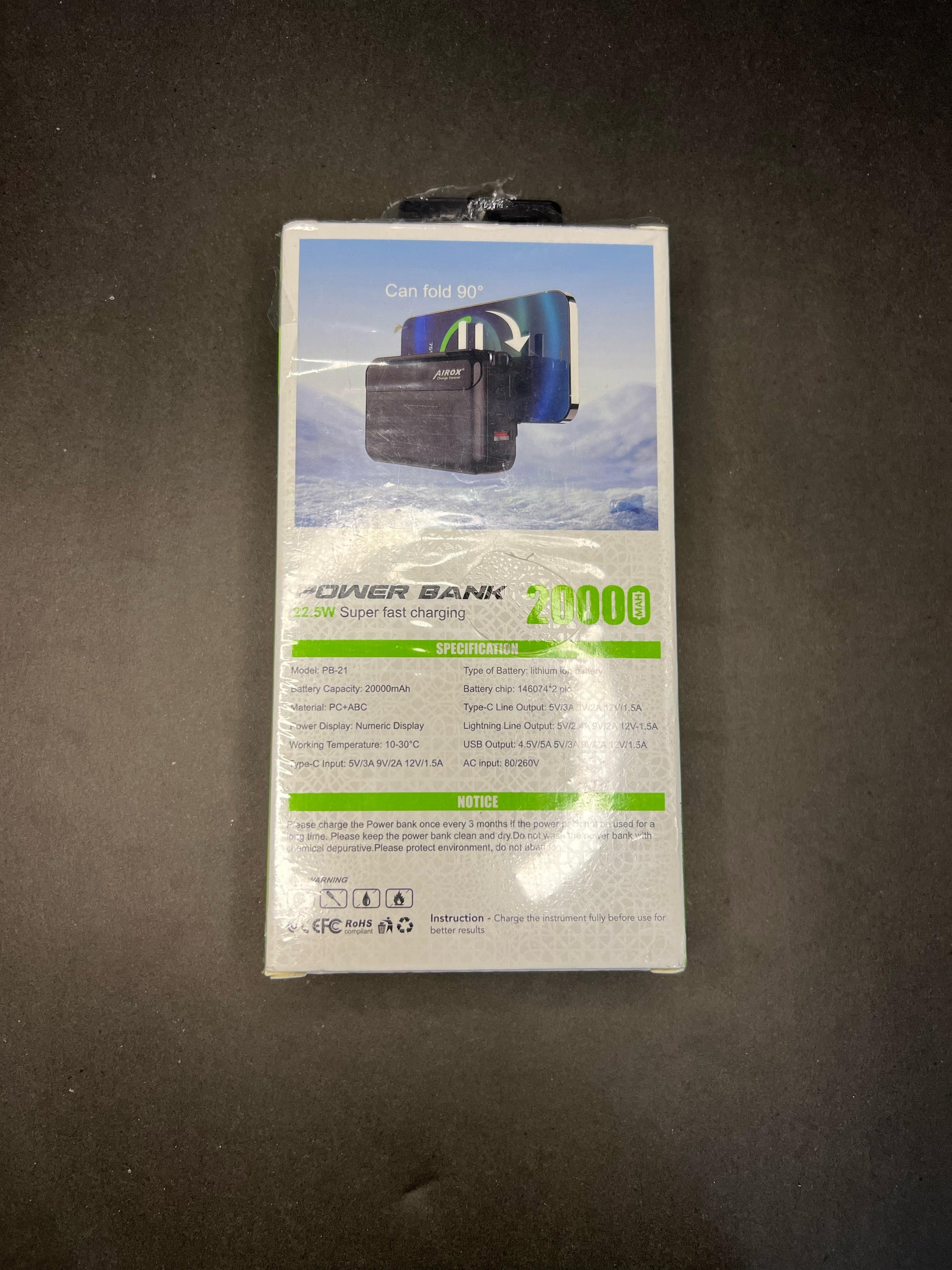 Keep your devices charged wherever you go with the Airox 20000mAh Power Bank, built for high performance and reliability. Featuring 20W super-fast charging and a 22.5W max output, this compact power bank delivers quick and efficient power to your smartphone, tablet, or other USB-compatible devices.